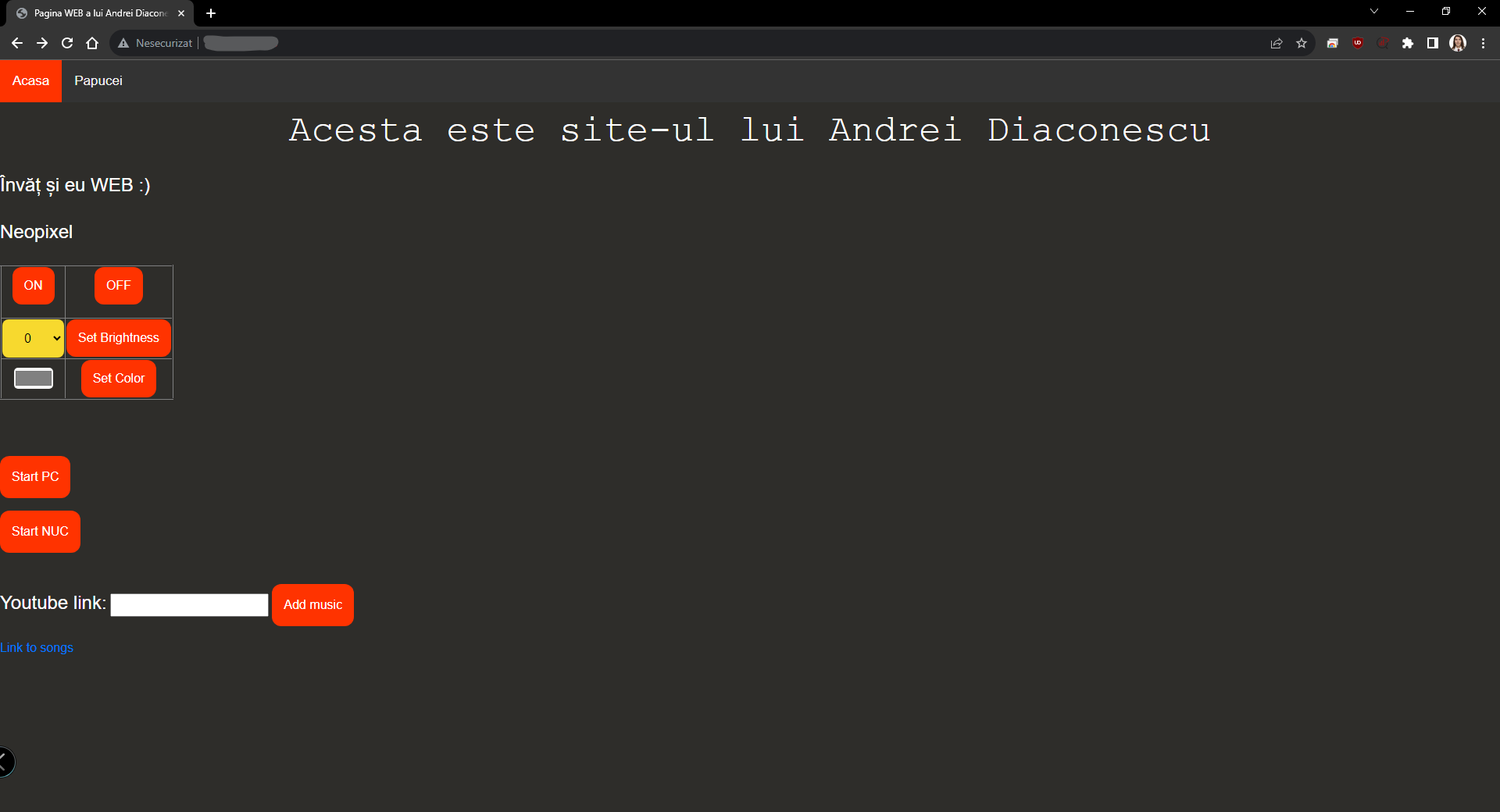 Totul era funcțional și mergea cum trebuie până într-o dimineață(octombrie 2021) când m-am trezit și am observat că NUC-ul era pornit(pe atunci nu puteam să îl pornesc din buton pentru că se oxidase ceva contact la el și singurul mod de pornire era WoL) și neopixelul era aprins și lumina foarte puternic în ceva culoare aleatoare. Mă gândeam dacă am vorbit ceva în somn și Google a interpretat dar am zis că mai bine să verific logurile serverului de Apache. Am văzut acolo în listă o grămadă de încercări de POST/GET request-uri de la diferite IP-uri de prin Asia și după mi-a picat fisa că am fost atacat.